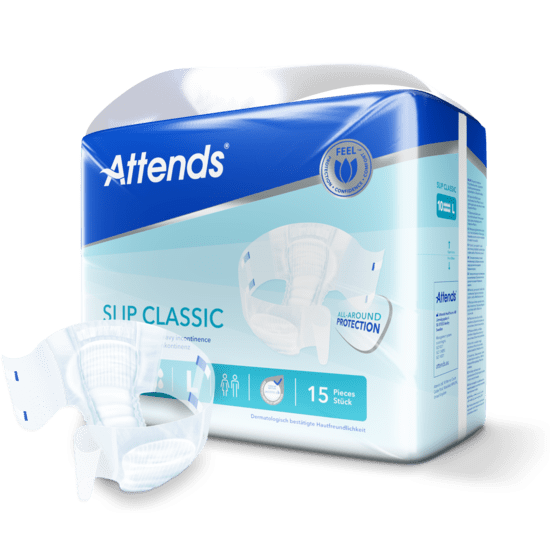 Attends Slip Classic is designed for men and women with heavy urinary and/or faecal incontinence.